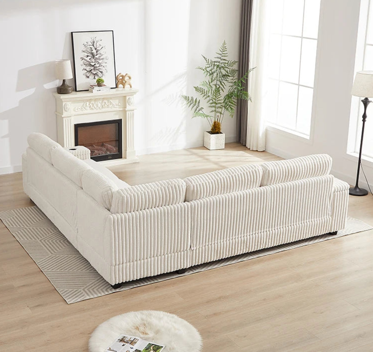 Luxury L-Shaped Sofa – Striped Velvet & Smart Storage