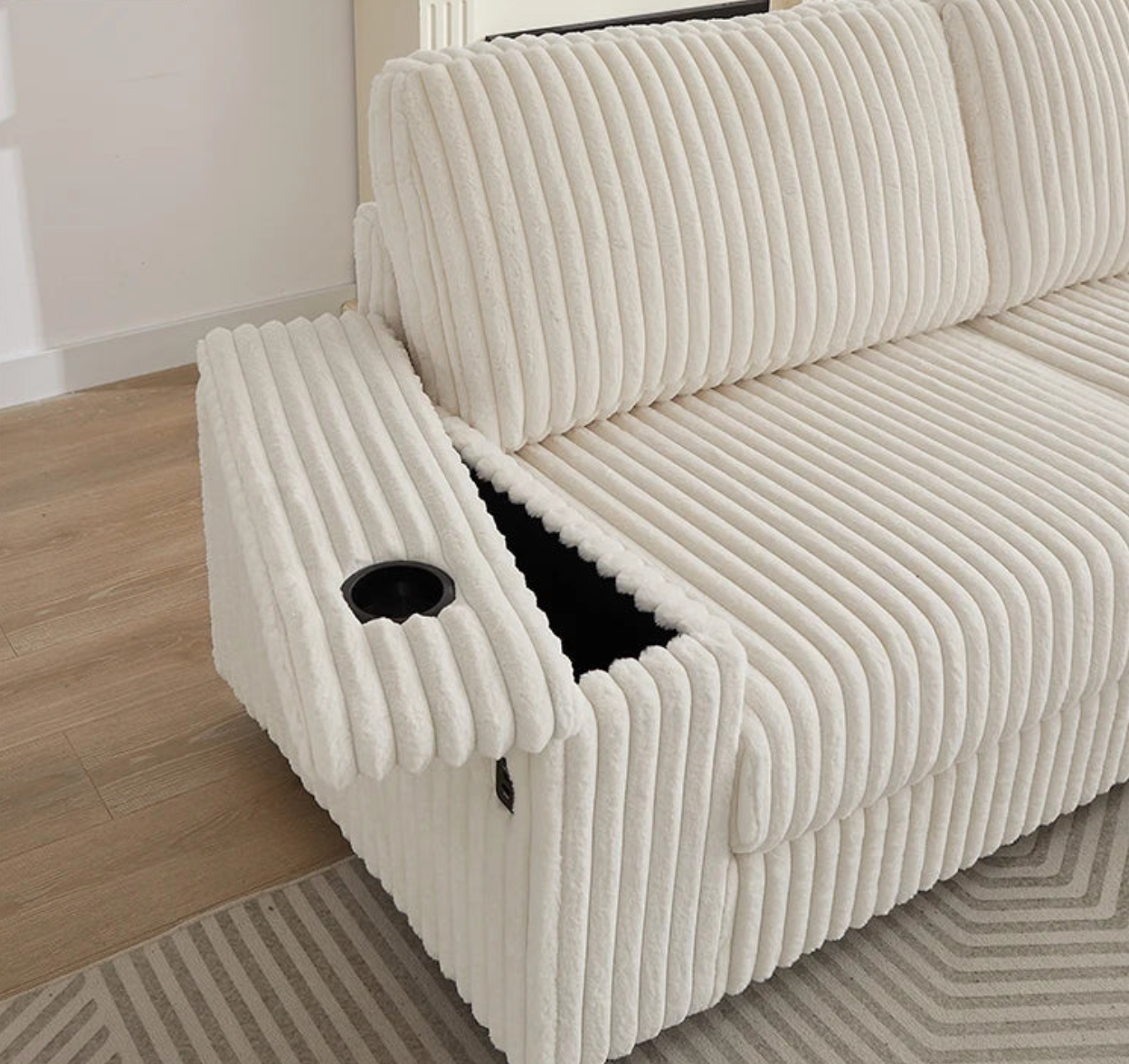 Designed for multifunctional living, this sofa features a built-in storage armrest, making it easy to keep your essentials within reach while maintaining a clean, stylish space.
